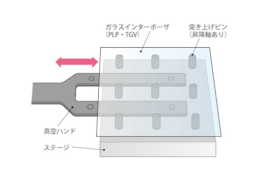 ガラス基板(TGV,FOPLP)「安全に」「確実に」「傷・汚れなく」「迅速に」非接触搬送するソリューションです。